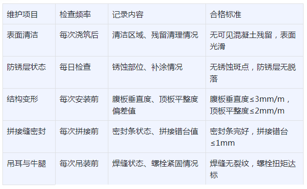 為確保維護無遺漏,需建立《箱梁鋼模板日常維護臺賬》,記錄關鍵信息并明確檢查頻率: